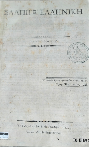 Ο Δημήτριος Υψηλάντης είχε τη γενική εποπτεία της έκδοσης, με συντάκτη και εκδότη τον ιερωμένο Θεόκλητο Φαρμακίδη, «πατέρα» της Δημοσιογραφίας στην Ελλάδα, με υψηλή πανεπιστημιακή μόρφωση, και τυπογράφο τον Κωνσταντίνο Τόμπρα. Η εφημερίδα κυκλοφόρησε για πρώτη φορά την 1η Αυγούστου του 1821, για τη διάδοση κυρίως του επαναστατικού λόγου προς τους Έλληνες και προς όλες τις μεγάλες ευρωπαϊκές Αυλές.Εκδόθηκαν τρία τεύχη, 1,5 και 20 Αυγούστου του 1821. Κατόπιν έγινε διακοπή της έκδοσης. Το τυπογραφείο μετεφέρθη στην Τριπολιτσά, μετά στο Άργος και από εκεί στην Κόρινθο, όπου έγιναν σπουδαίες εκτυπώσεις προκηρύξεων, διαταγών, το Προσωρινό Πολίτευμα κ.λπ., αλλά κατεστράφη κατά την εισβολή του Δράμαλη.